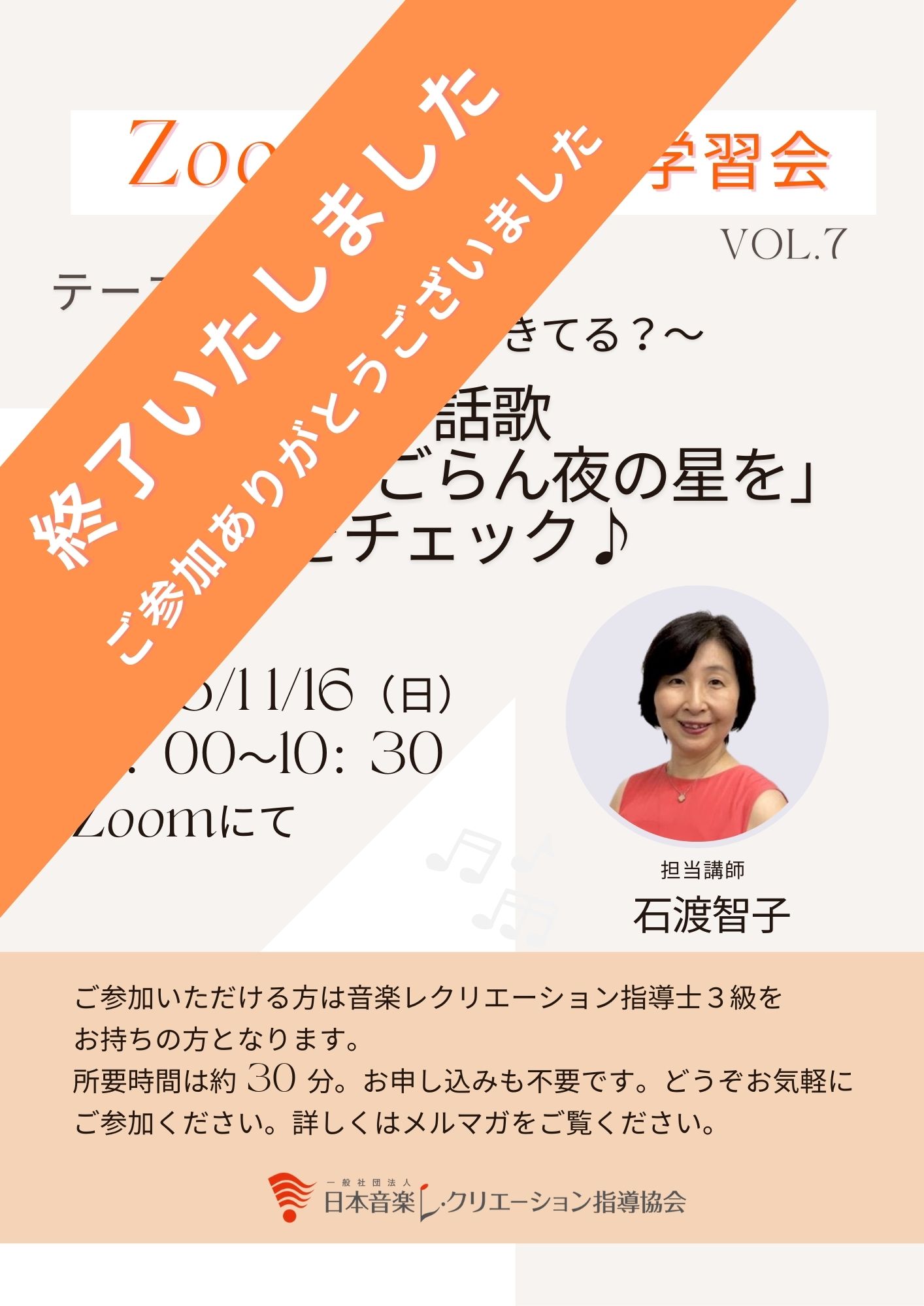 10:00〜10:30【3級取得者対象】 Zoomで音レク学習会 Vol.9 -