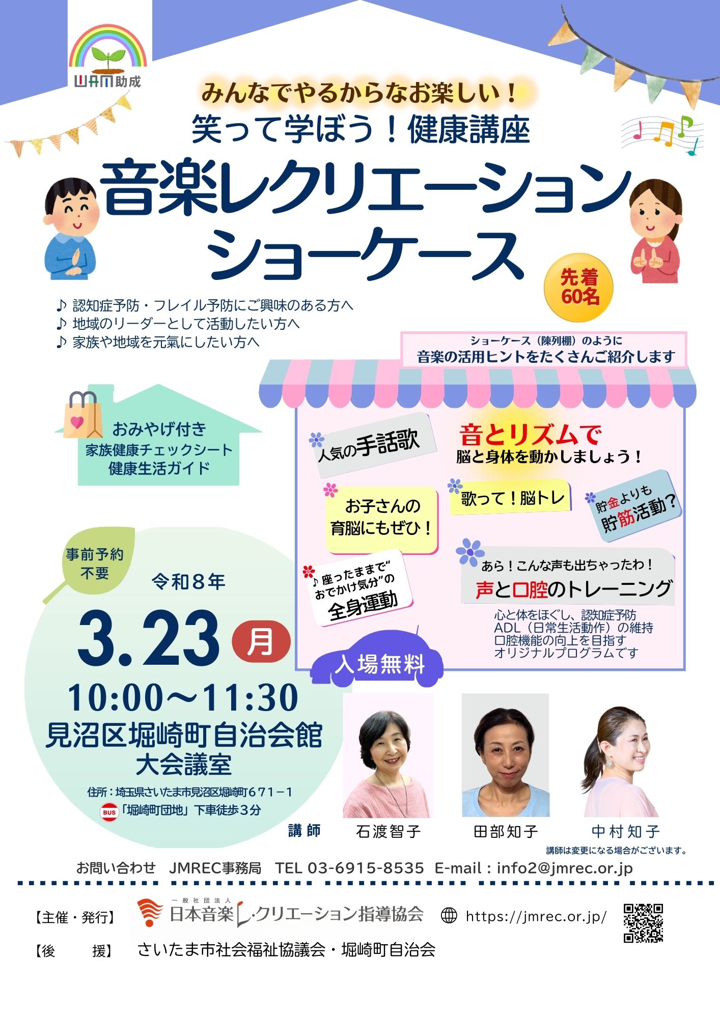 10:00〜11:30【入場無料】音楽レクリエーションショーケース in 埼玉 3/23 -
